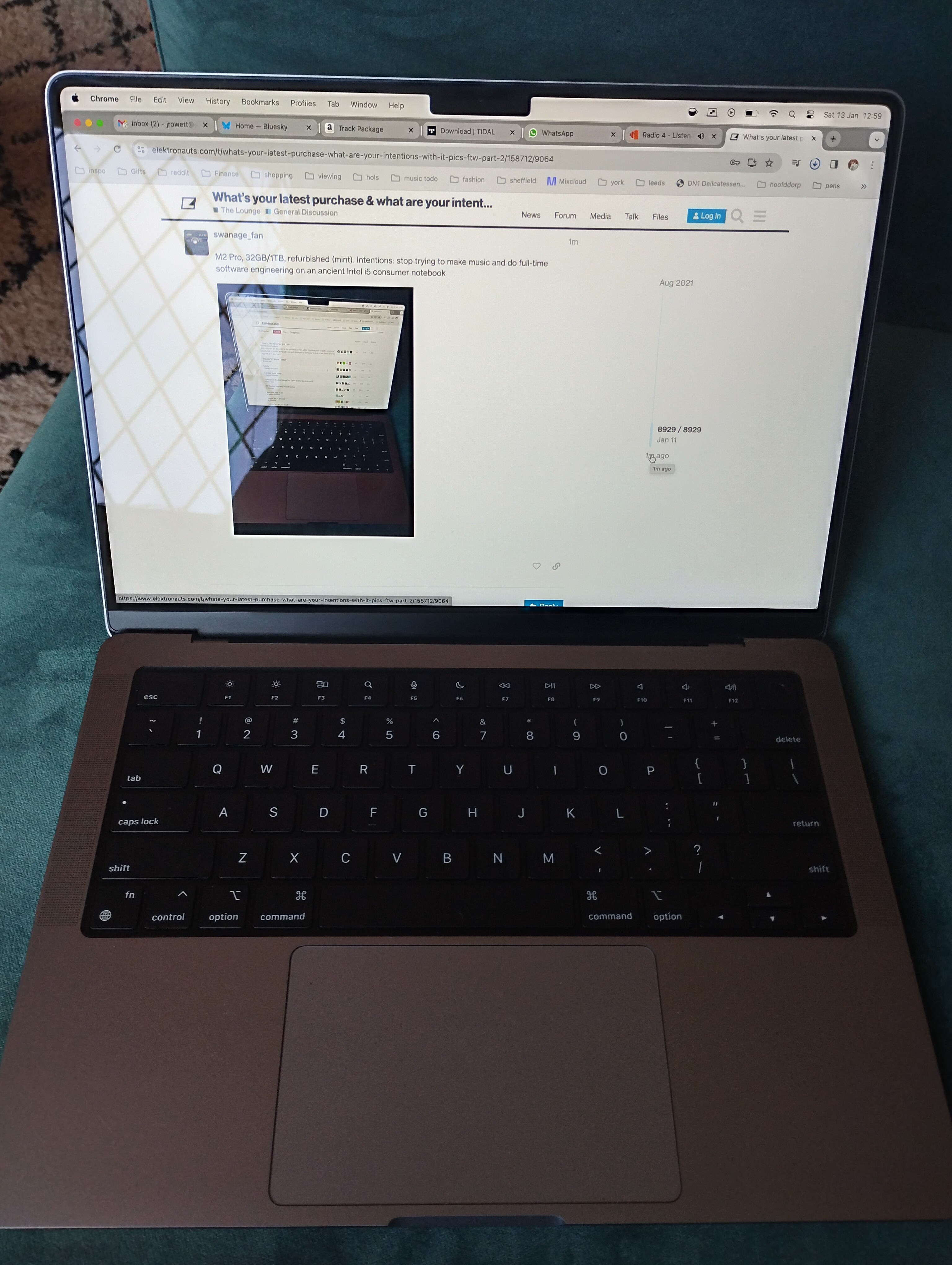 M2 Pro, 32GB/1TB, refurbished (mint). Intentions: stop trying to make music and do full-time software engineering on an ancient Intel i5 consumer notebook