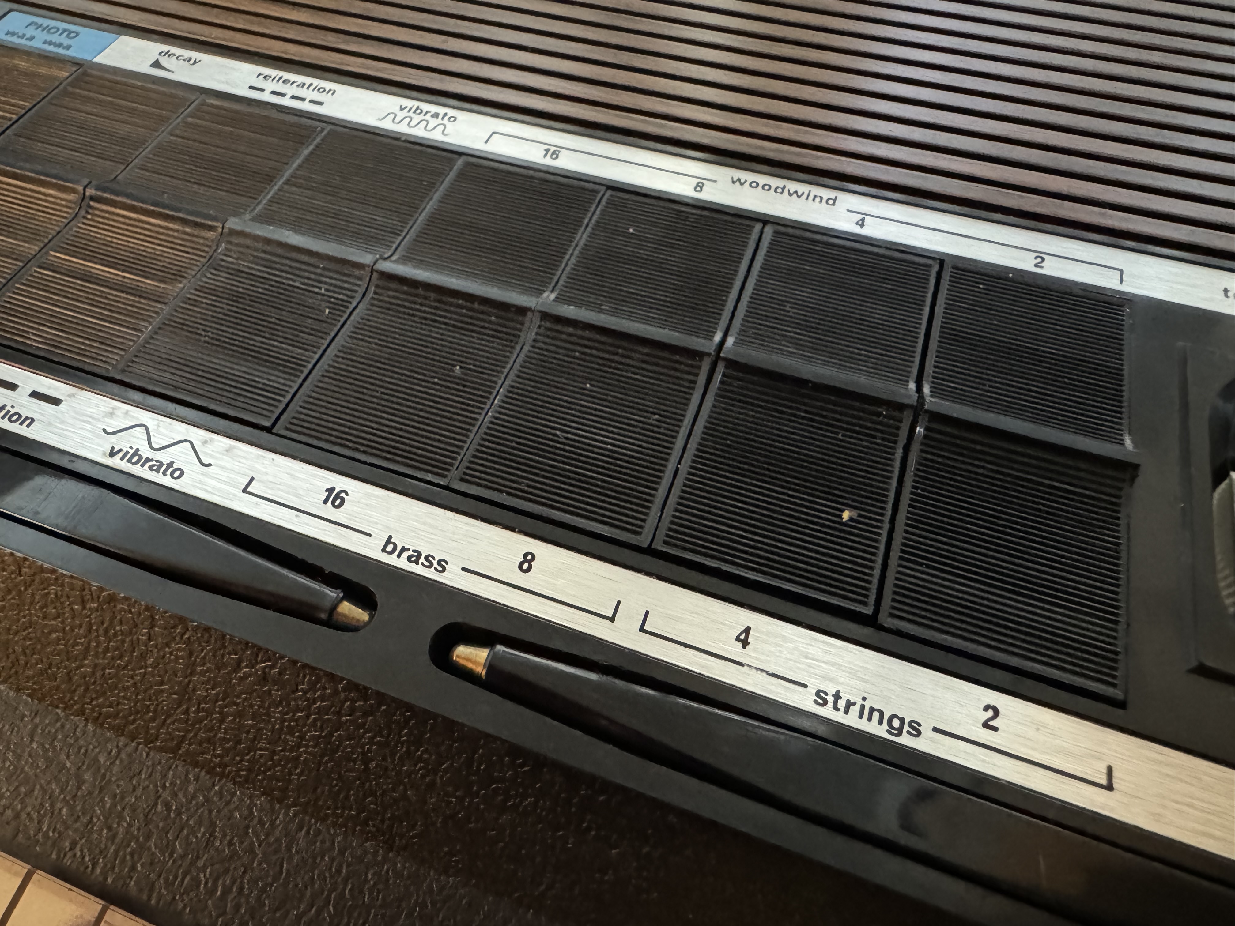 Found at a vintage fair in Whitby this weekend. The most full-featured, over-engineered Stylophone ever built. Features include divide-down oscillators (sounds like square, pulse, and saw) with stackable octaves; a primitive D-beam controller for the wah wah effect (a LPF), amplitude envelopes, and a two-step arpeggiator!
