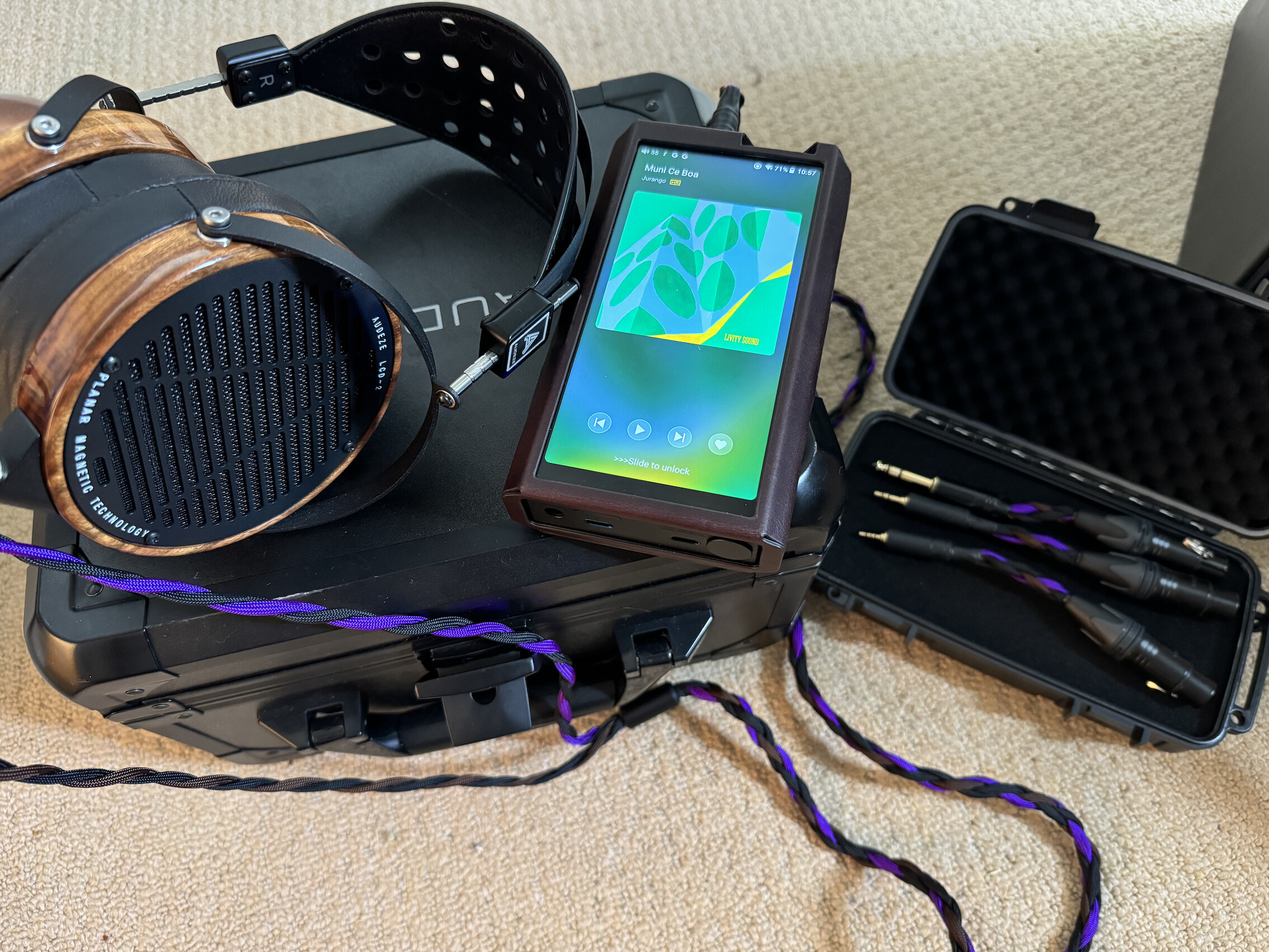the Fiio player is nuts, massively overengineered in a really fun way, the headphones are the best i’ve heard (they’re like a really good, powerful pair of speakers) and the custom cables from Hart Audio are lovely (amazing customer service from those guys too, I specced the wrong connectors and after the build, they spotted my mistake, contacted me, and rebuilt them correctly without charging me extra)