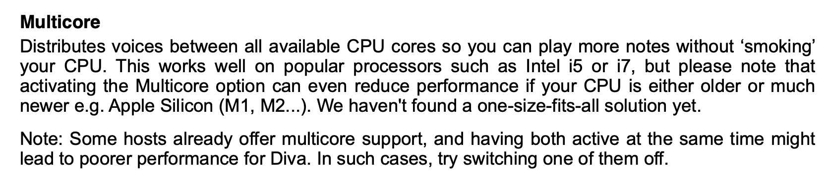 I tried it in Digital Performer as well. There it seems it works as expected. The CPU usage meter drops significantly when the “Multicore” is switched on. But on the other hand the UI behaves strangely here. Can’t switch the modules or effects freely… Strange. I would probably use it mainly in Bitwig anyway. The thing I meant earlier was the “Plugin hosting mode”, but now I am not sure, because I think it is RAM related, not CPU…