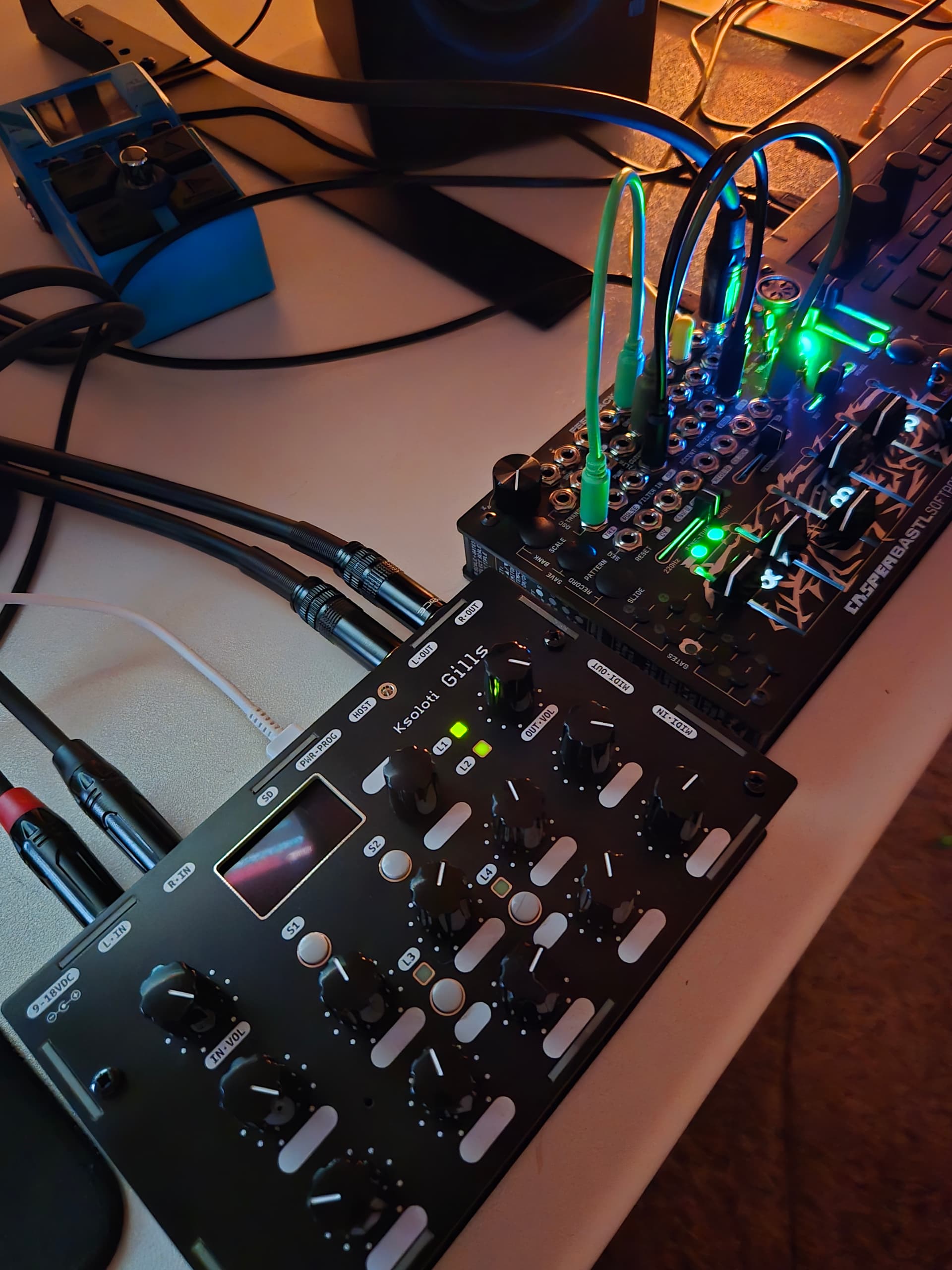 After a long illness and waiting for it to be built, finally started to learn and explore Ksoloti Gills. My first attempt using it as a reverb/delay box.