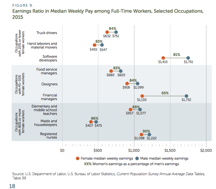 From the same, mistakenly linked report: Yes, median pay, but same occupation: