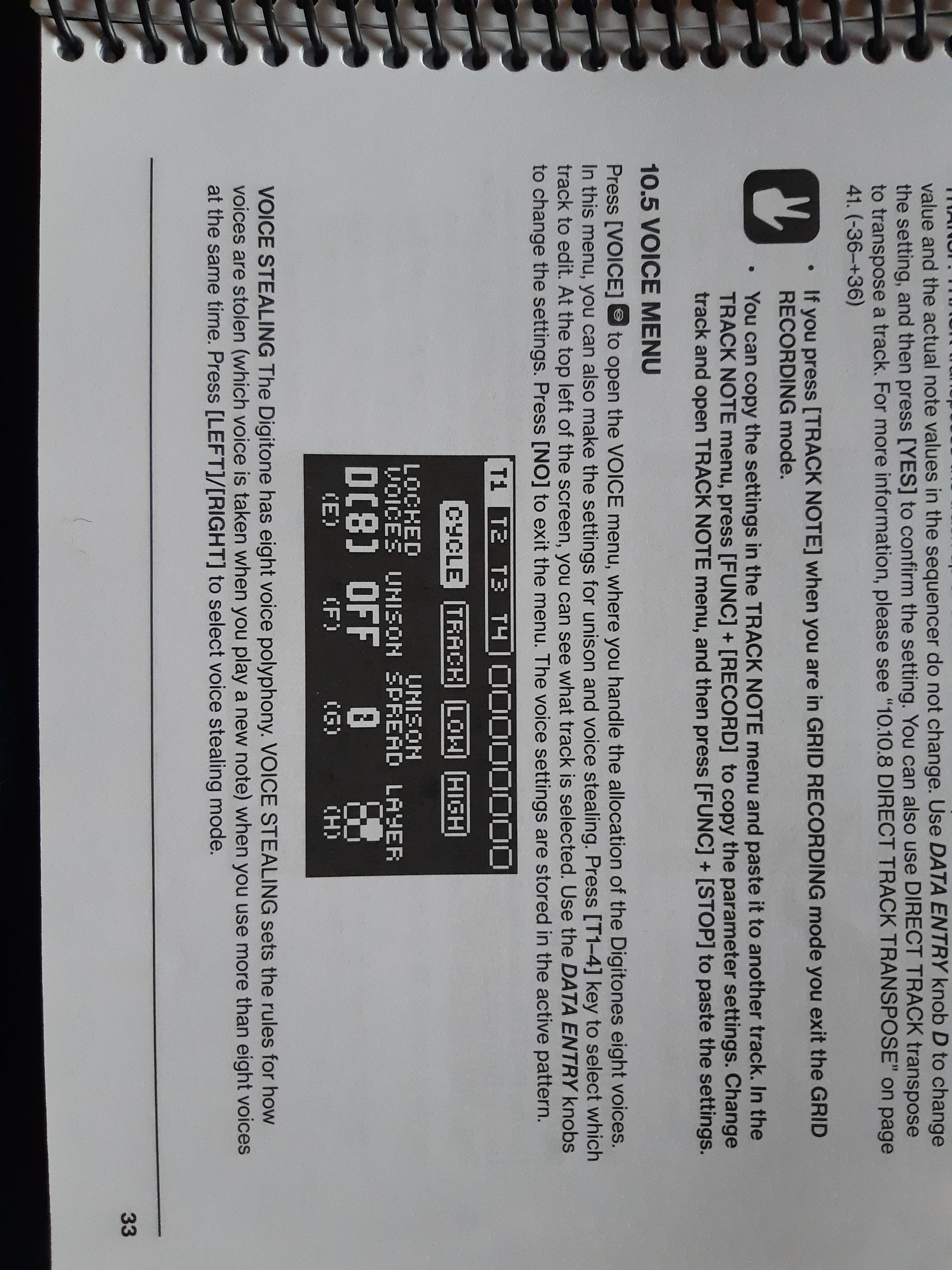 CYCLE The first played note is stolen first. TRACK Track priority. Notes played on track 1 has priority over notes played on track 2, 3, and 4. Track 2 notes over track 3, 4 Track 3 notes over track 4.