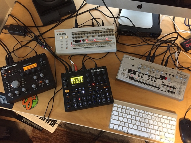 Mini + Microbrute : Again great fun to play with, but I think I am better of with the new situation, A1 + Korg Volca FM and larger Keyboard. Should be also great fun using the sequencer of the DT controlling the A1.