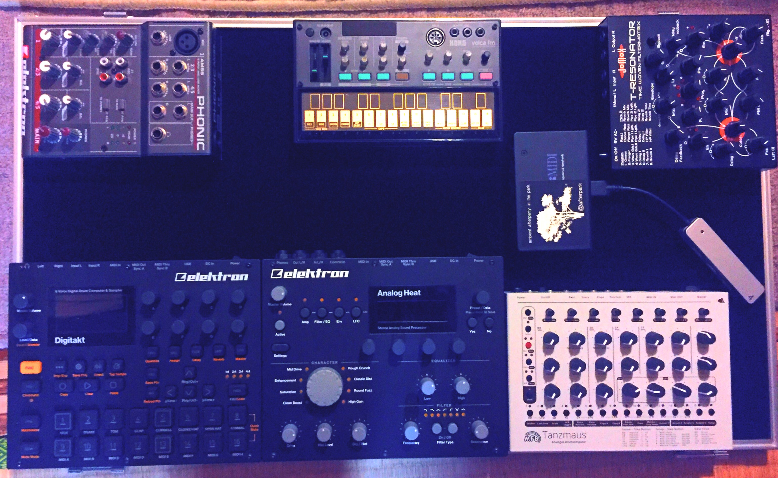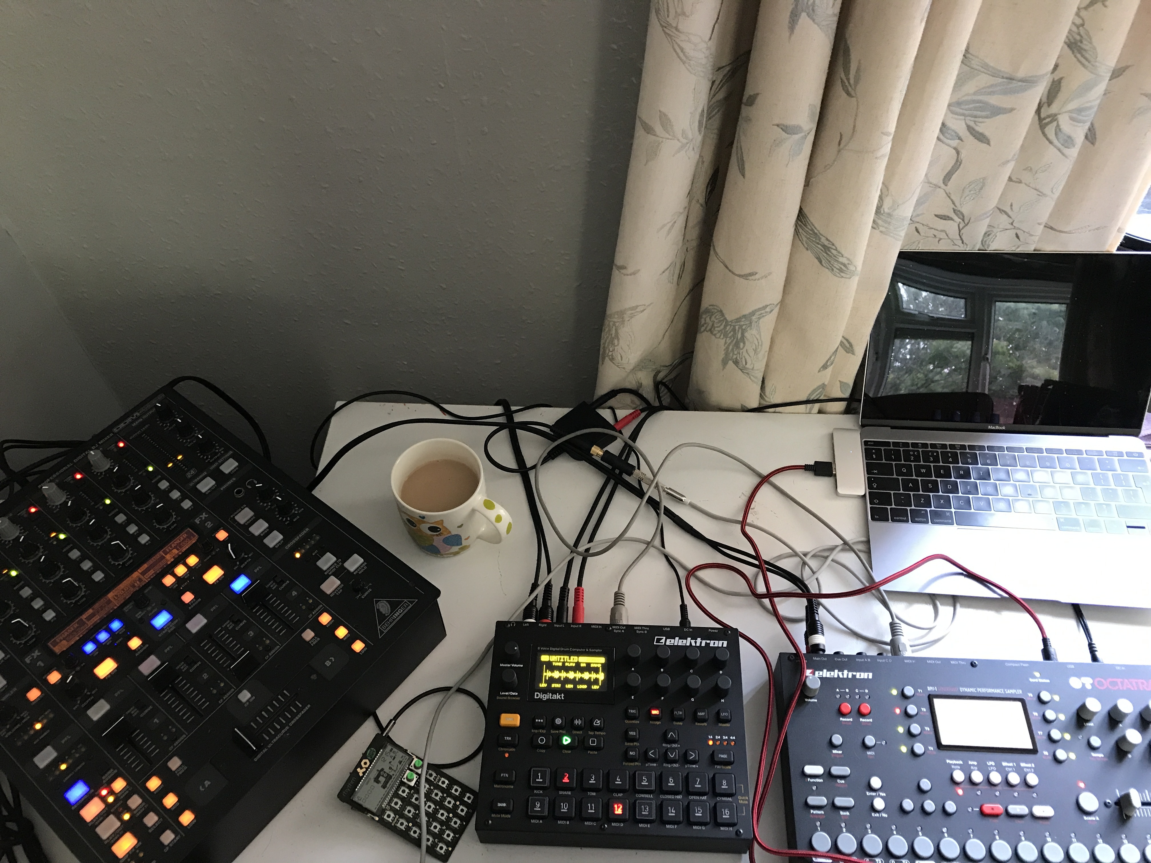 When I buy a new toy I tend to make space for it so I can focus only on that piece of gear. So Digitakt only for a while, altho I’m fairly sure the urge to sample stuff will set in quickly… Then slap it on top of the Analog Keys alongside a 0-Coast, probably routing the 3 toys into and out of each other as needed, I wanna keep it mixer free. My other stuff is taking a longer vacation in a closet atm