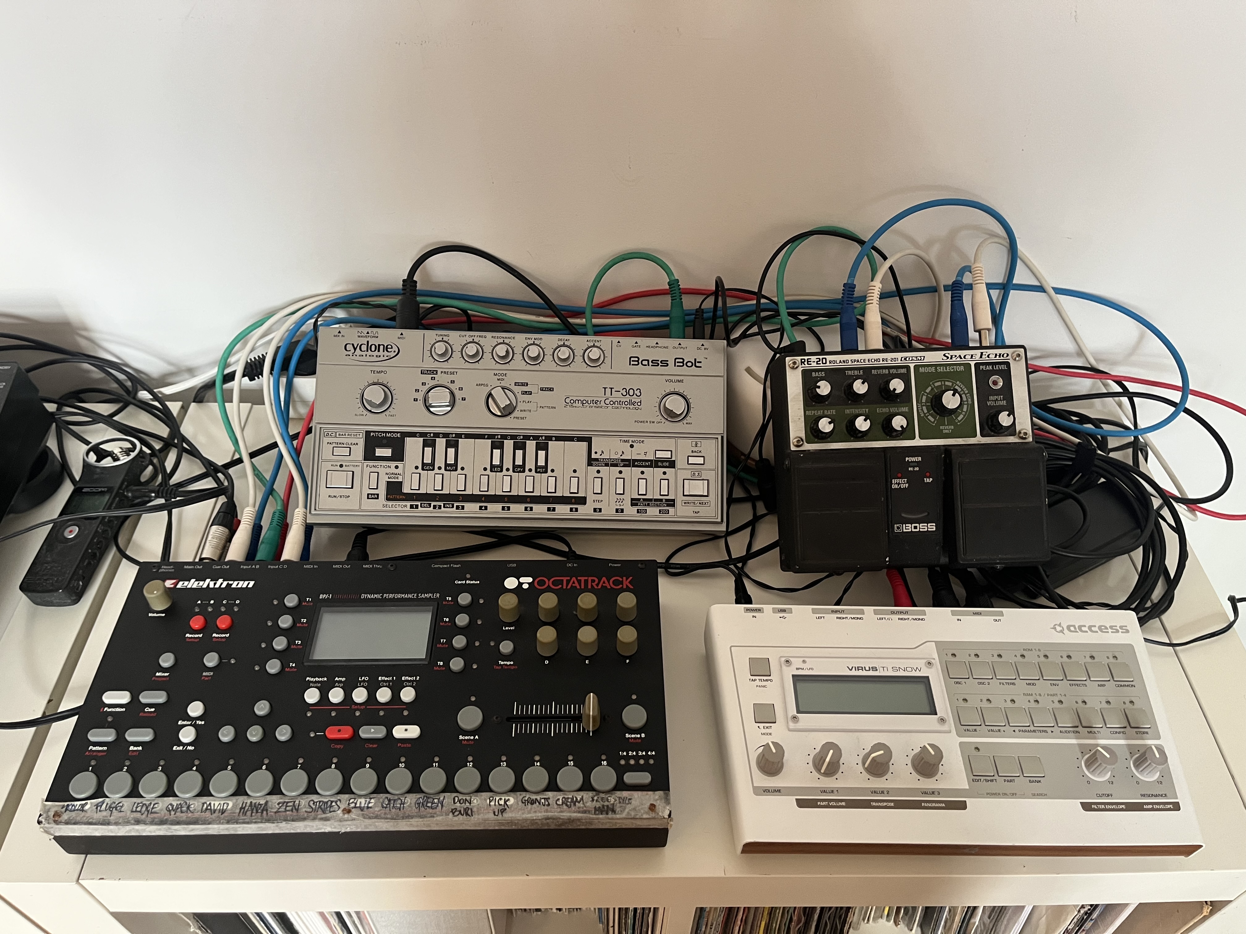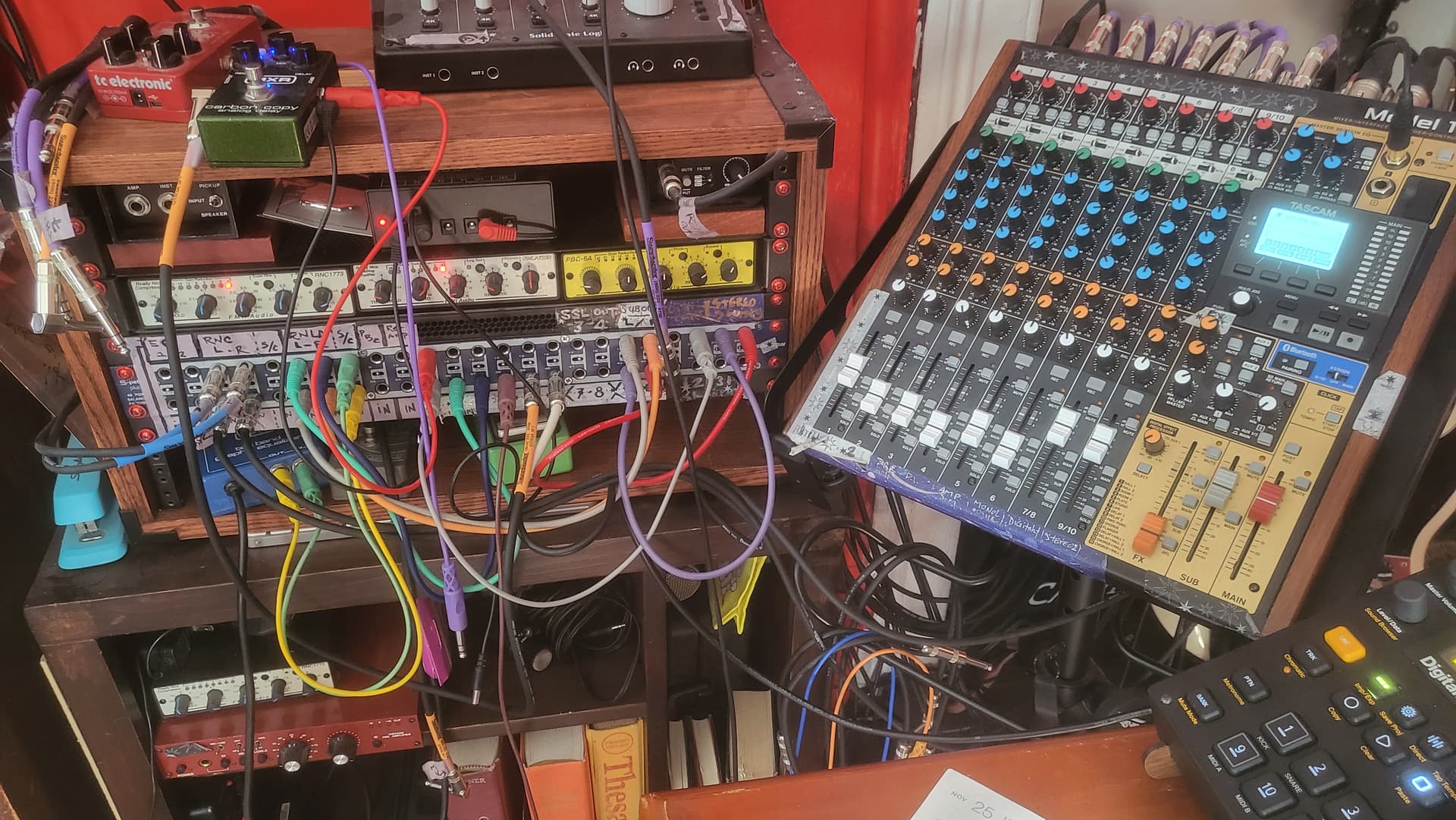 And here’s my messy spaghetti of a recording and mixing setup: