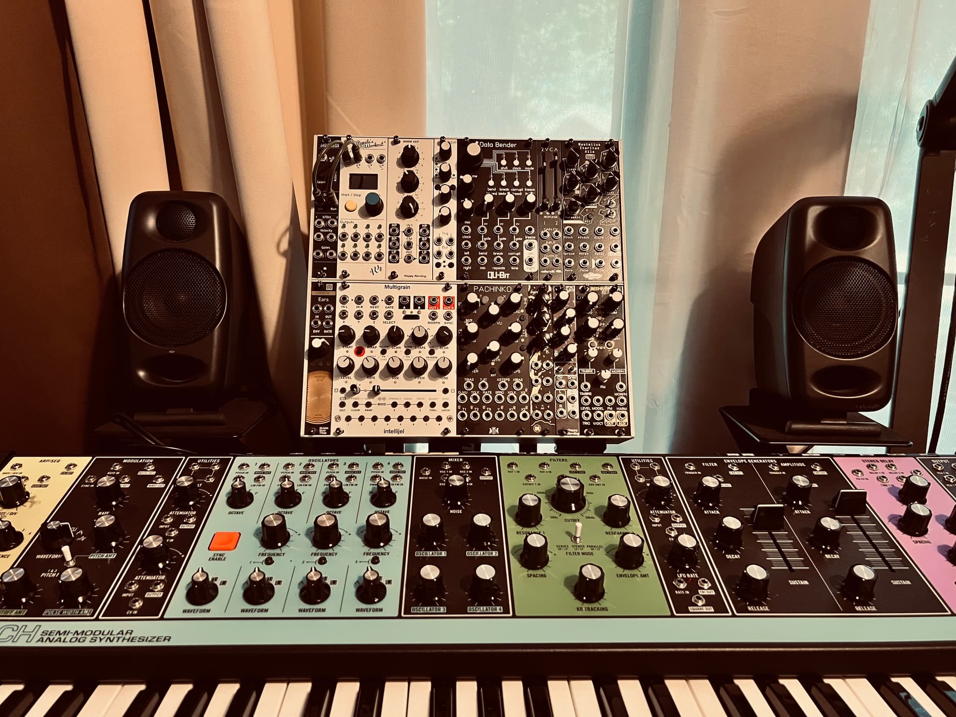 Push 2 and dt2. I turn on the computer and basically look away from the screen, using the push 2 as the central hub. Digitakt 2 is linked with overbridge, so it’s also acting as an input for the microfreak and elmyra. It basically feels dawless this way, but with all the luxury of having it all ready to arrange when i have enough gathered from the jamming part.